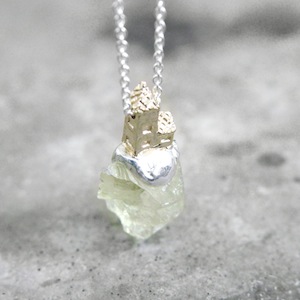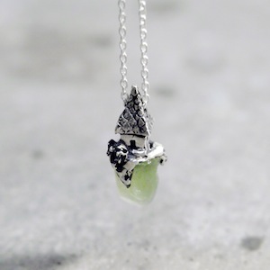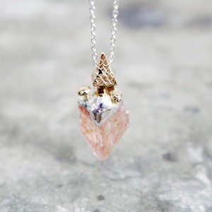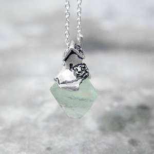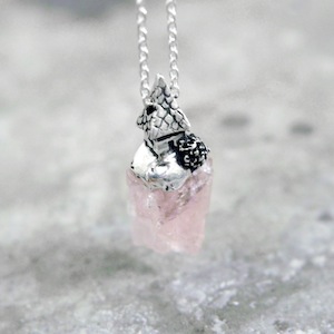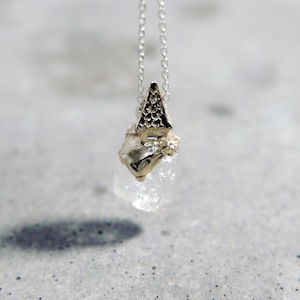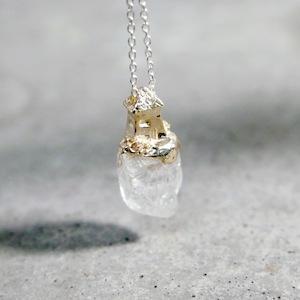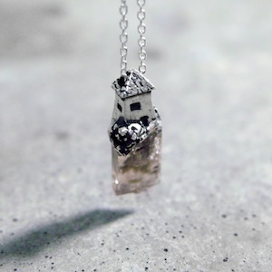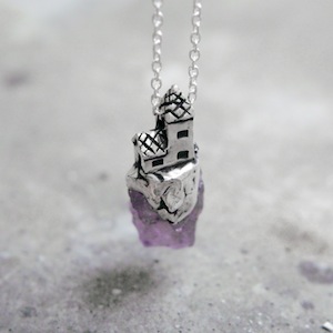 ロカは石・岩の意味。天然石を使用して、その上に建つ建築の姿を描いたネックレス。天然石は原石を使用し、石の形状にあわせてシルバーを制作しているため、すべて一点ものとして制作しております。ROCAシリーズと比べるとやや小ぶりで着用しやすいネックレス。